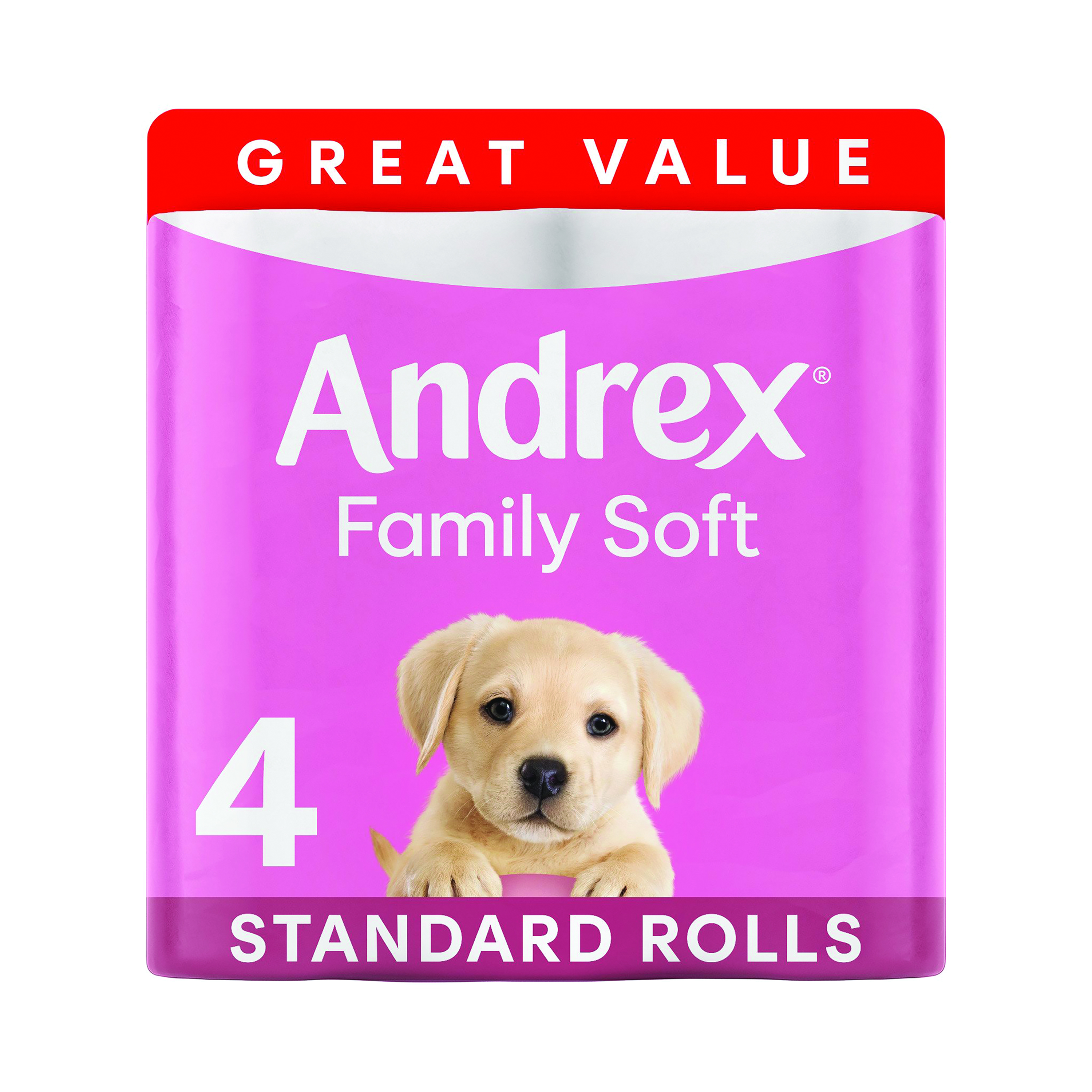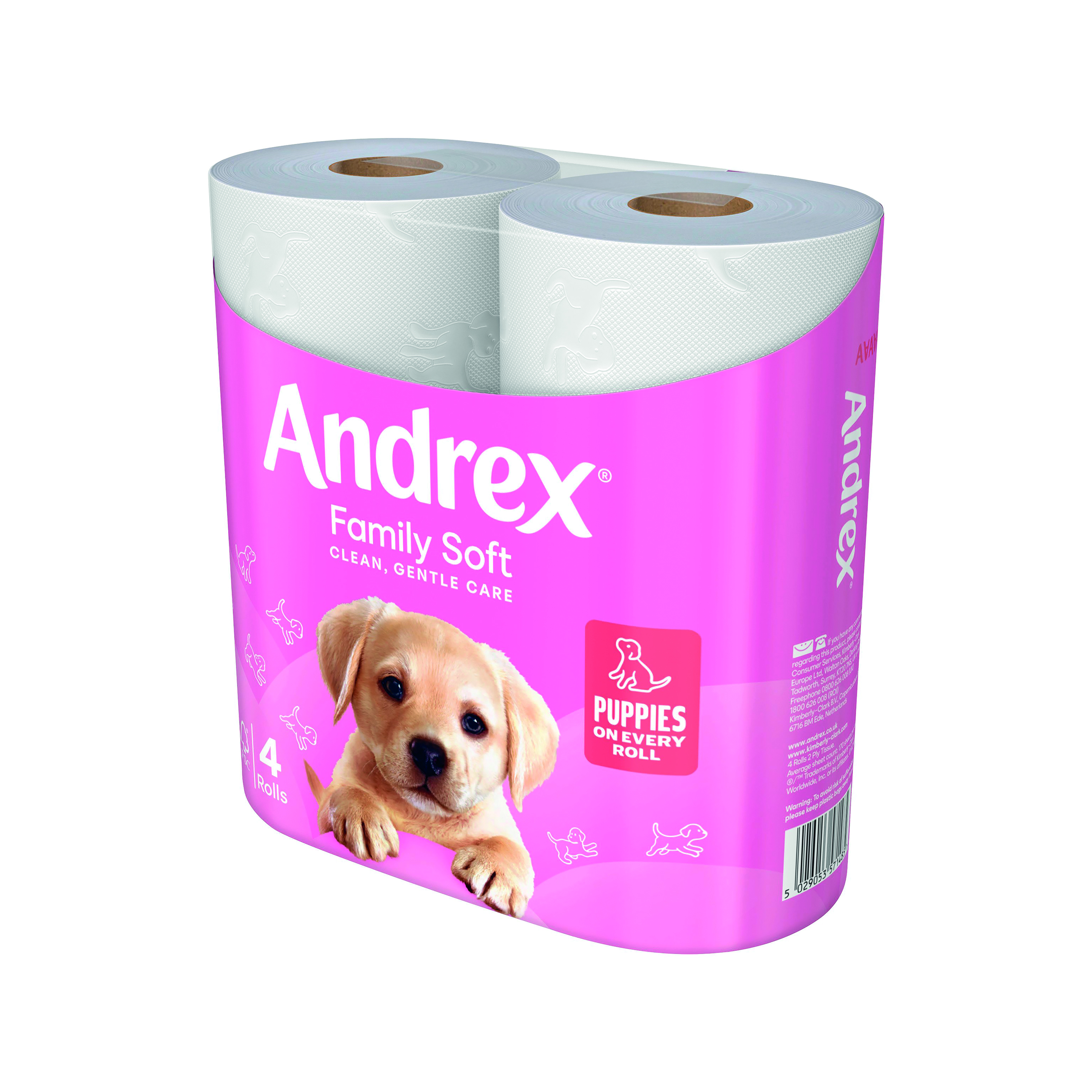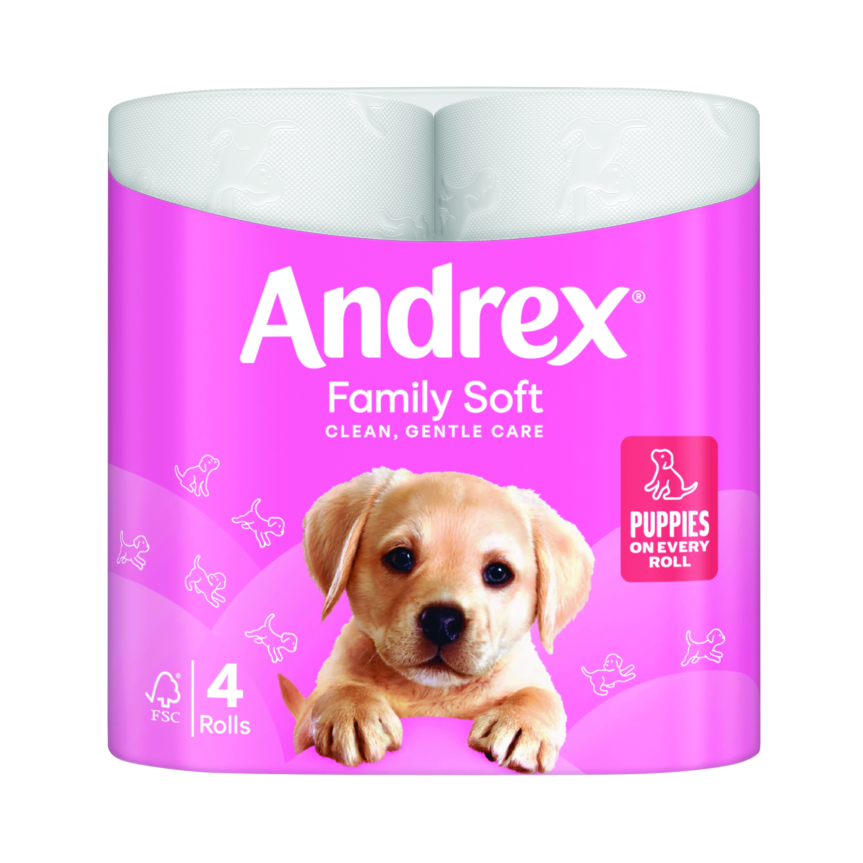 For a pure and gentle clean. Embossed with puppies on every sheet. 2-Ply toilet roll, with 4080 sheets in total, that is approved by the British Skin Foundation. Previously 'Andrex Gentle Clean', Andrex Family Soft is still the same quality but with a different design. This packaging is made from 50 percent recycled plastic.