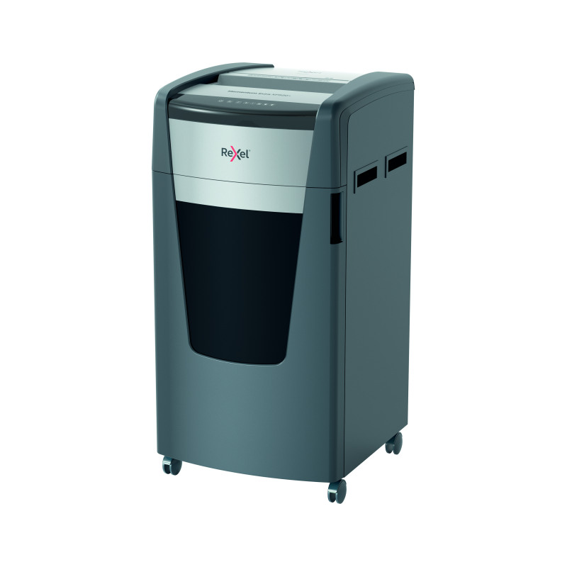 Rexel Momentum Extra jam free paper shredders are ideal for destroying confidential documents in the office. The XP520+ shredder machine shreds up to 20 sheets of A4 paper (80gsm) in one go through the manual feed slot into P-5 (2x15mm) cross-cut pieces. Active sensing technology measures the number of sheets being fed in real-time to stop paper jams and misfeeds; indicated by a red LED on the control panel. This paper shredder will not operate until the number of sheets is reduced below or at the maximum sheet capacity. This cross-cut shredder is designed for moderate to heavy use with its high sheet capacity, large 120L bin size and continuous run time. There's no need to manually feed paper, or remove staples and paper clips first; this Rexel shredder also safely shreds CDs, DVDs and credit cards through a separate feed slot.